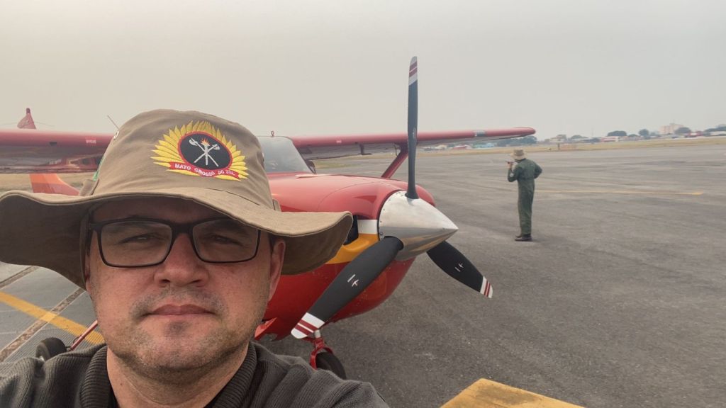 Zalla: No estado de Mato Grosso do Sul, tem um setor que cuida dos transportes aéreos, das missões aéreas que são feitas por aviões e como servidor do Estado, eu vi uma oportunidade de atuar nessa área. Logo, eu corri atrás para me tornar piloto, me formar e ir crescendo. Agora, eu estou chegando no auge da carreira, estou chegando a comandante das aeronaves. É uma trajetória de muita luta, de muito acreditar, de muito investimento pessoal, de tempo. Eu fui para vários lugares para aprender a voar, já estive em São Paulo, em Minas Gerais, Pará de Minas, Bauru, enfim, vários lugares onde eu estudava em escolas e evoluindo minha carreira. Ter um domínio sobre a aeronave, sobre o voo, é demorado, isso é com o “tempo de janela“.