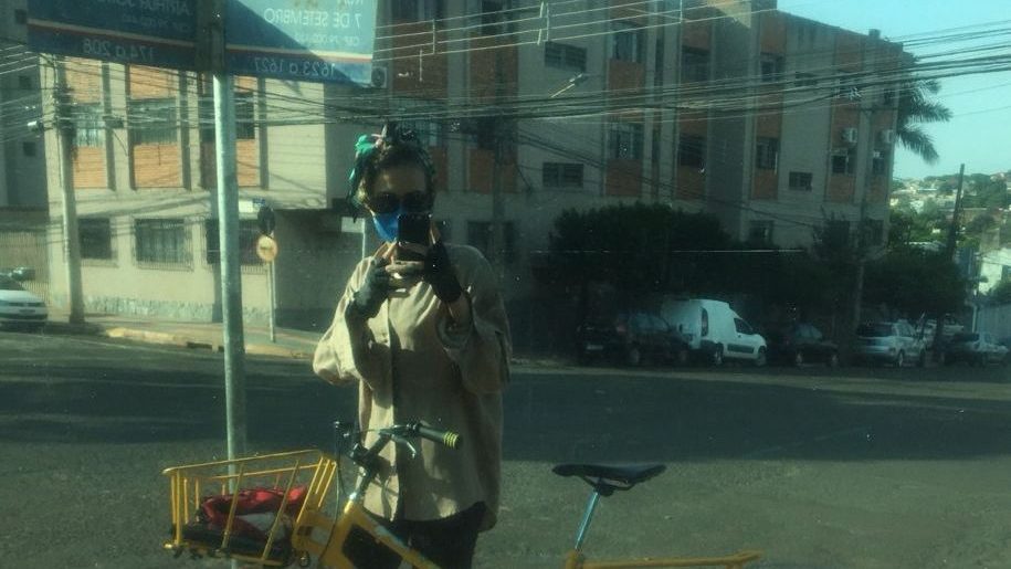 Laura durantes as entregas do dia-a-dia do Catita Bike Entregas (acervo pessoal)