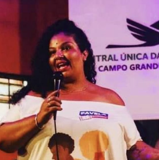 Disposta a ajudar, Letícia Polidorio recebe meu convite para entrevista com um sorriso no rosto, sempre com um tom de voz animado e simpatia no olhar. Letícia se autodenomina, uma mulher feminista, negra e gorda, e tem tido papel importante nos movimentos sociais de Campo Grande, defendendo as causas da periferia, seu lugar de origem. Expressando-se também com sua poesia na cidade e junto com as “minas” do Slam, um lugar do qual ela ama pertencer.