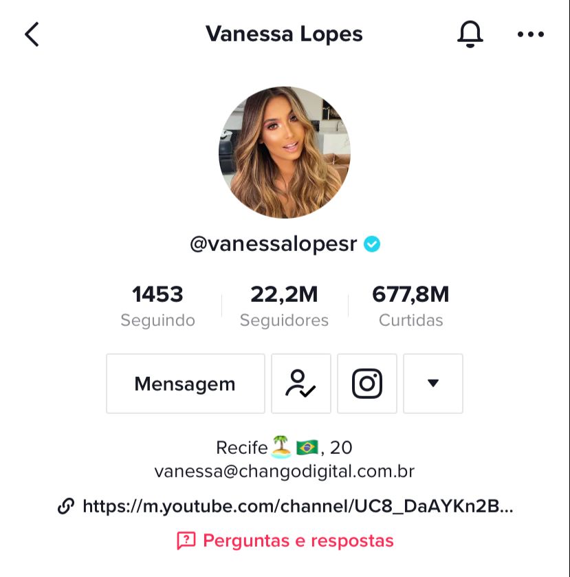 O grande ‘’boom’’ de Vanessa aconteceu durante a pandemia, que além dos milhões de seguidores na plataforma de vídeos curtos, acumula também 11 milhões no Instagram e mais de 1,5 milhão inscritos no YouTube.