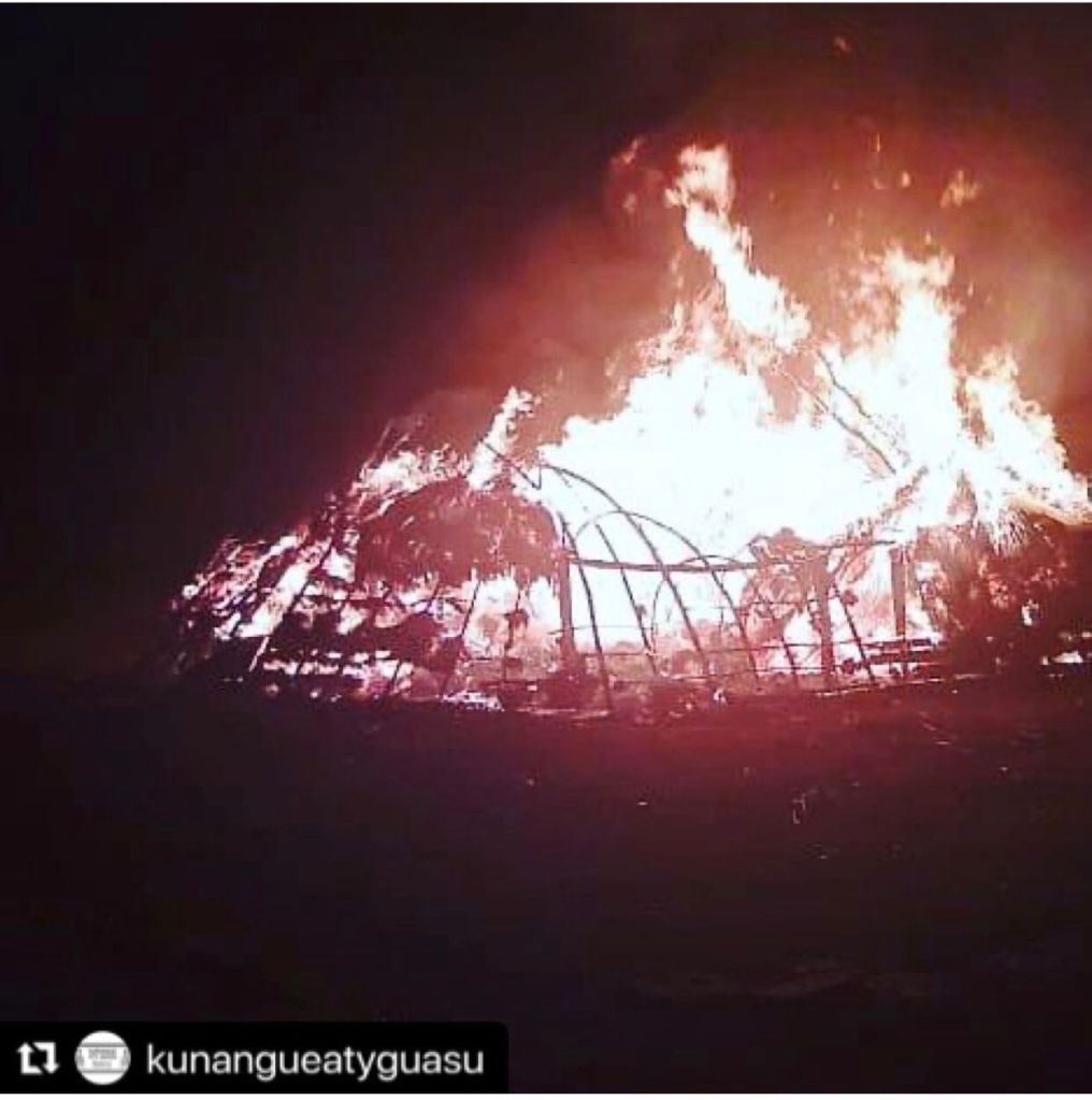 Aline acrescenta que “as casas de rezas são como um comprimento da terra do saber da natureza, é através das casas que os espíritos da natureza vem nos abençoar. É nela que são feitos os rituais mais importantes do povo Guarani e Kaiowá, quando a casa de reza é queimada se quebra um ciclo, está desrespeitando nossos encantados (espíritos)”.
