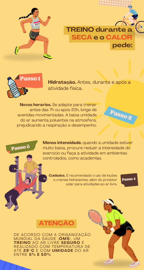 Em tempos de calor extremo e fumaça, cuidar da saúde deve ser a prioridade. Ajustar a intensidade e o horário dos exercícios, manter-se hidratado e proteger-se da poluição são atitudes simples que podem fazer toda a diferença para a segurança e o bem-estar dos praticantes de atividades físicas.