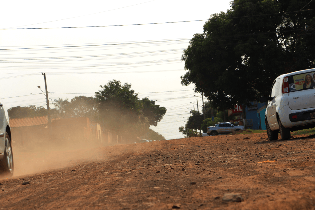 “Essa poeira chateia a gente”, conta uma moradora do Jardim Noroeste sobre enfrentar o tempo seco em um bairro sem asfalto. Segundo a dona de casa, Viviane Oliveira, de 37 anos, seus filhos são os mais afetados pela baixa umidade e terra, com crises respiratórias, tosse e sangramento nasal. Viviane se mudou para o Noroeste há um ano com seus dois filhos: José Arthur, de 12 anos, e João Paulo, de cinco anos.